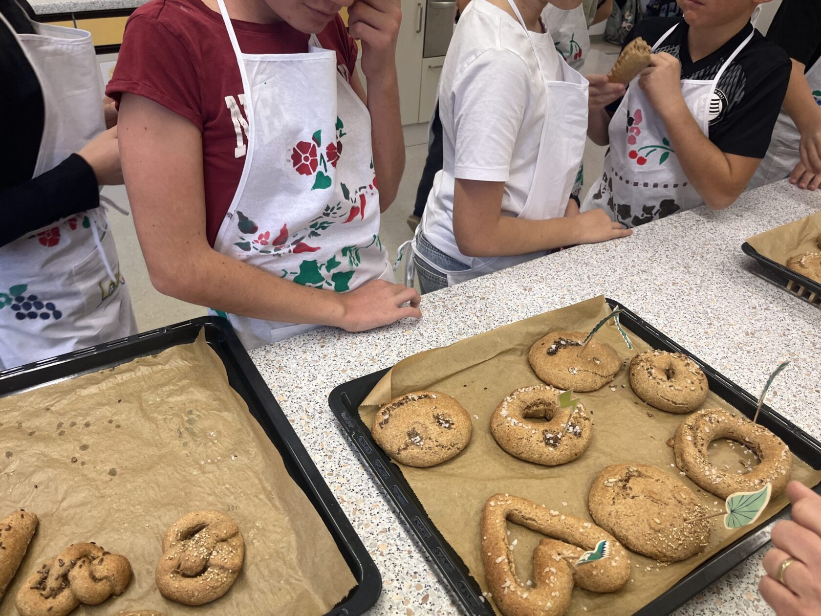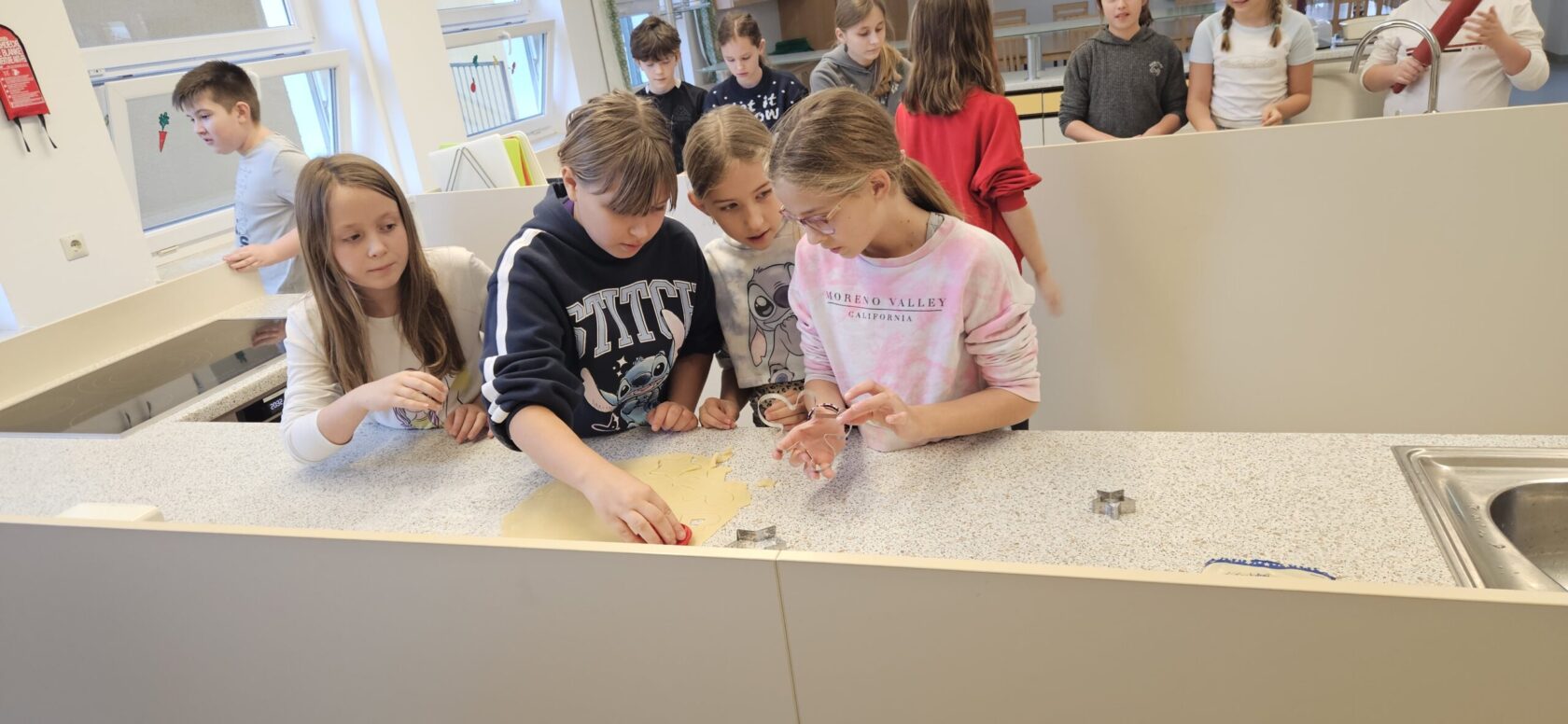 Anschließend wurde es praktisch: Teig kneten, formen, bestreuen – die Kinder waren mit Begeisterung dabei.