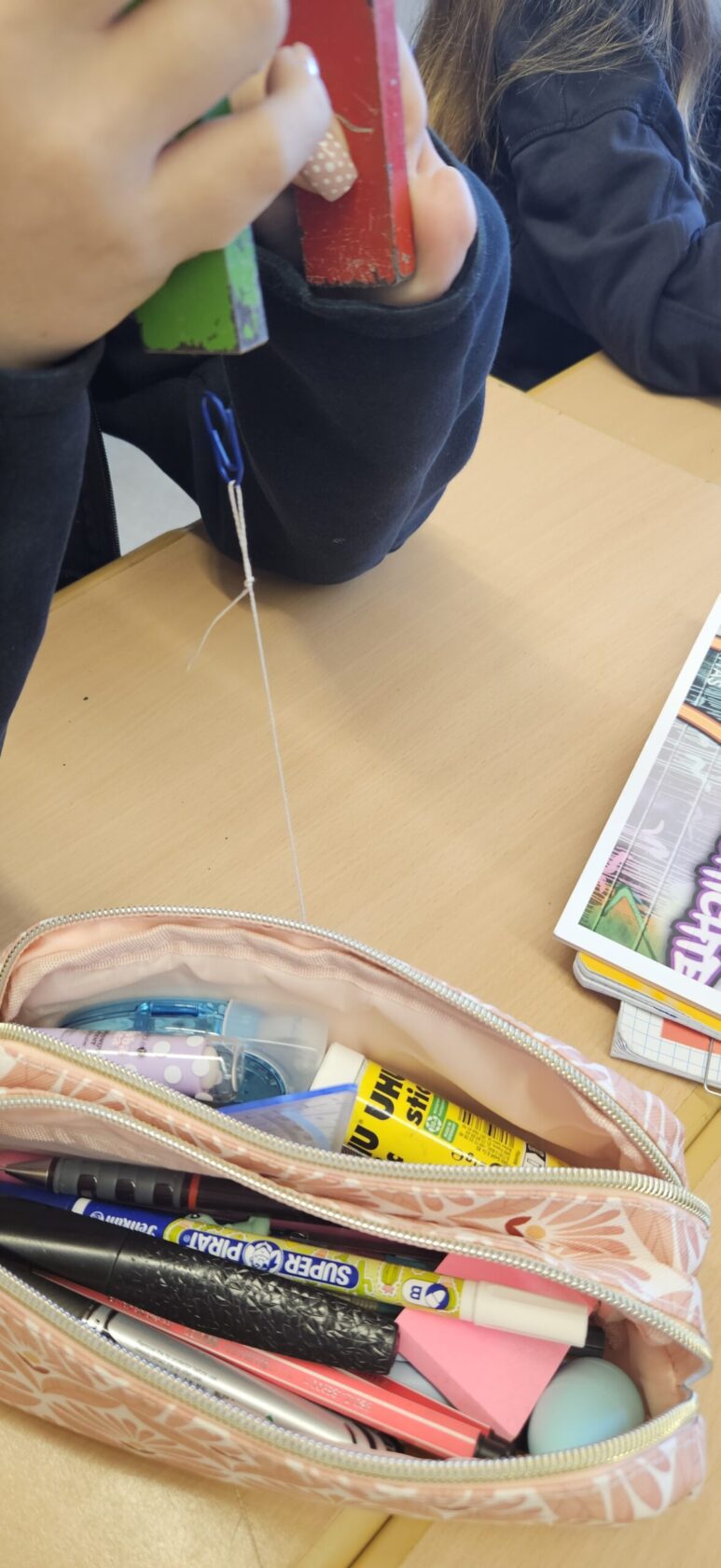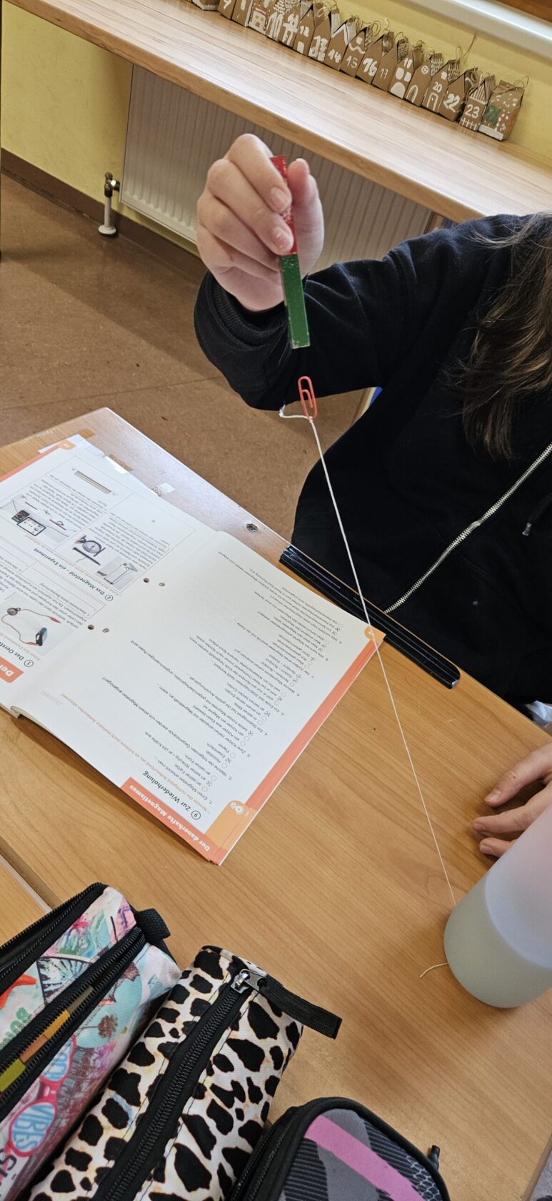 Im zweiten Experiment ließen die Kinder eine Büroklammer schweben. Durch geschicktes Positionieren eines Magneten hing die Klammer frei in der Luft und zeigte eindrucksvoll die Kraft des Magnetismus.