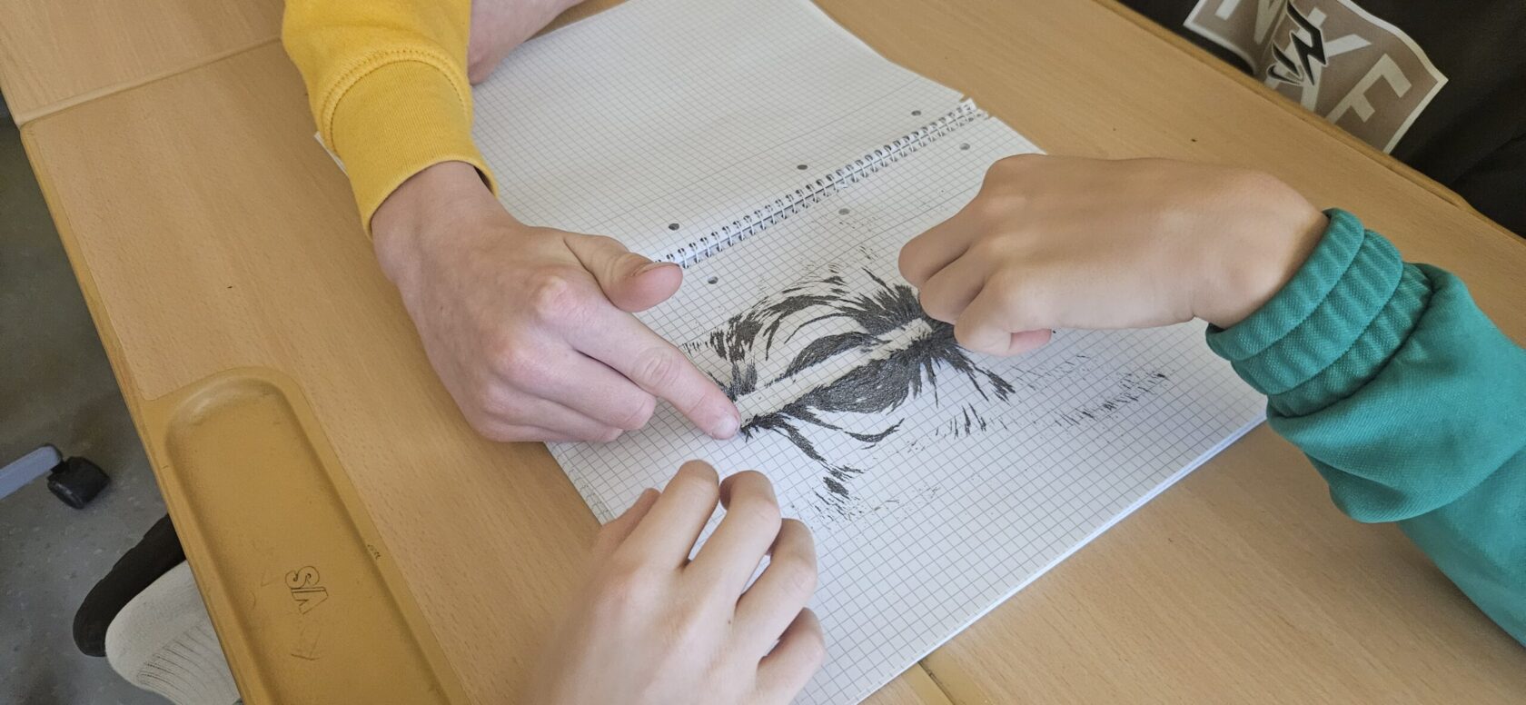 Im ersten Versuch machten die Schüler:innen das Magnetfeld eines Stabmagneten und eines Hufeisenmagneten sichtbar. Mithilfe von Eisenspänen und Eisenstaub konnten sie die Feldlinien eines Magnetfeldes beobachten.