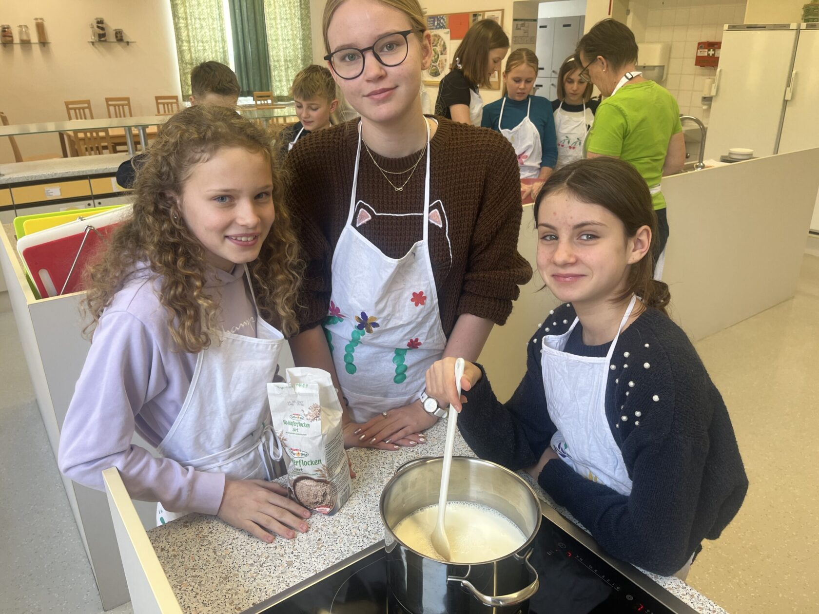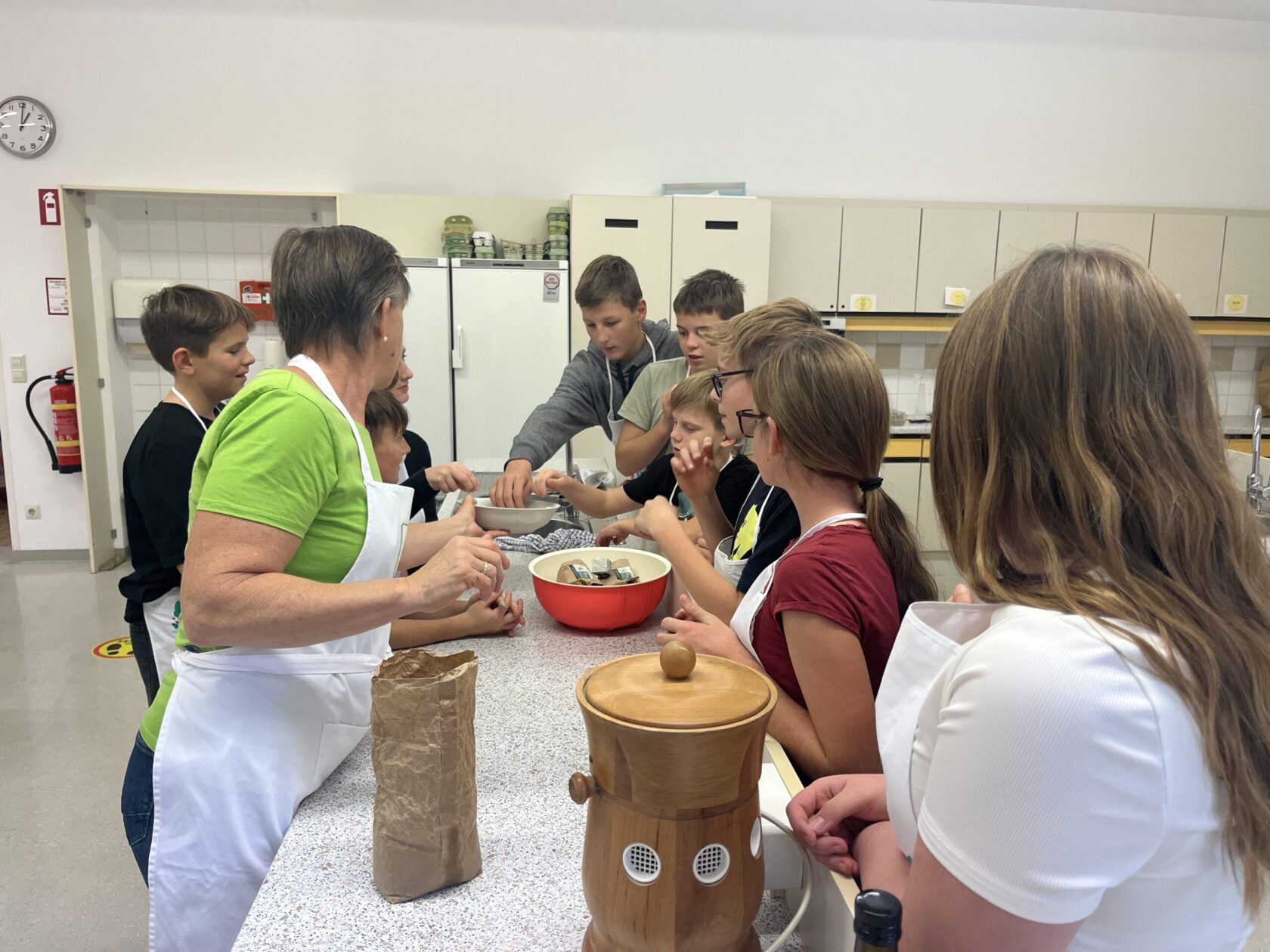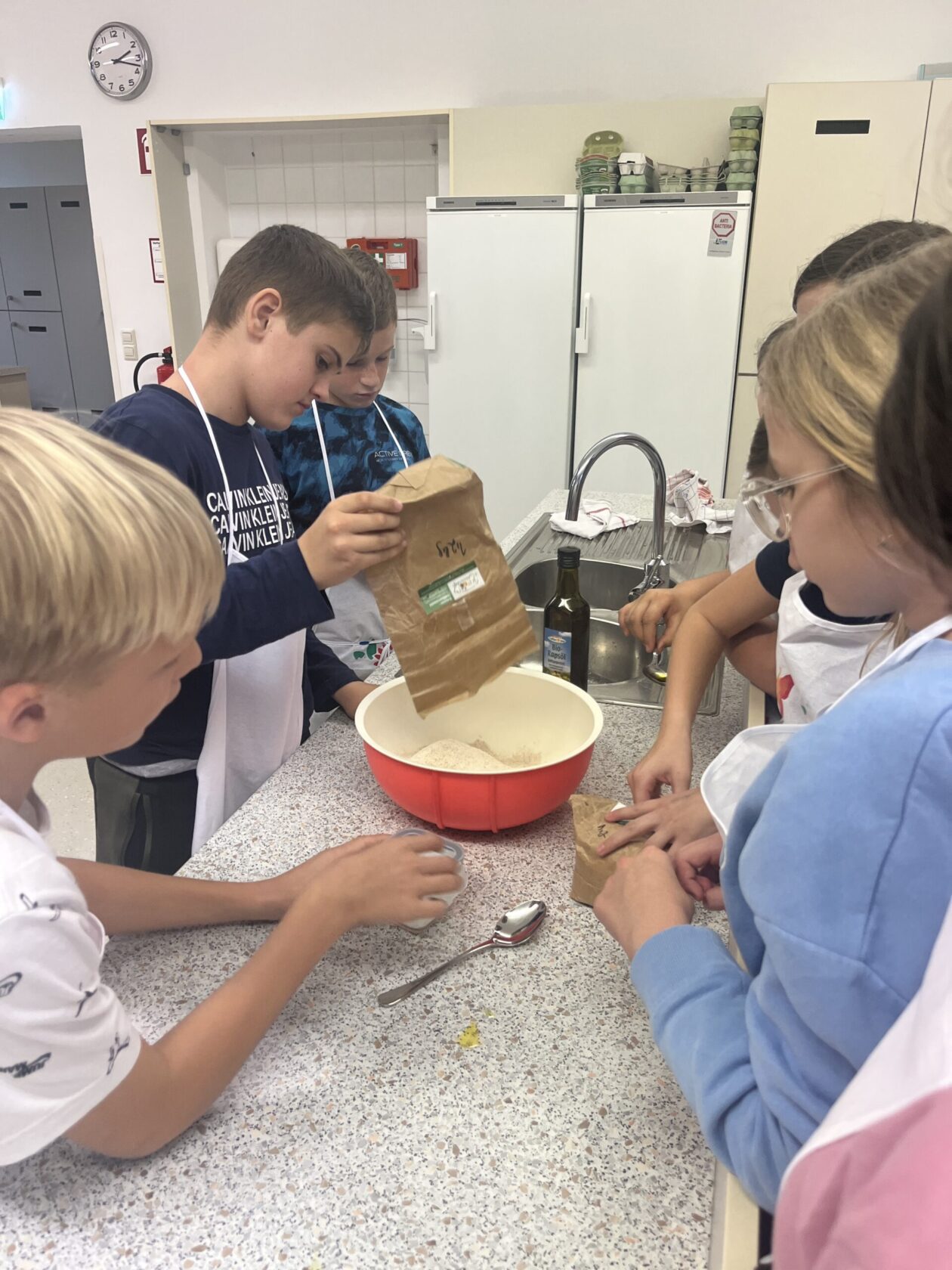 Zu Beginn erfuhren die Schüler:innen , welche Getreidesorten es gibt und wie diese verarbeitet werden. Mit großem Staunen betrachteten sie verschiedene Körner, mahlten selbst Mehl und konnten so jeden Schritt hautnah miterleben.